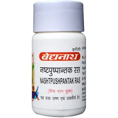 Nashtapushpantak Ras is an Ayurvedic medicine, with herbal and mineral ingredients, in tablet form. It is used mainly in treating male and female infertility. It is also helpful to relieve menstrual pain, used to treat rheumatoid arthritis and eye diseases. Baidyanath Nashtapushpantak Ras is beneficial and provides many profits like in disorder menses, Ache in the back waist.