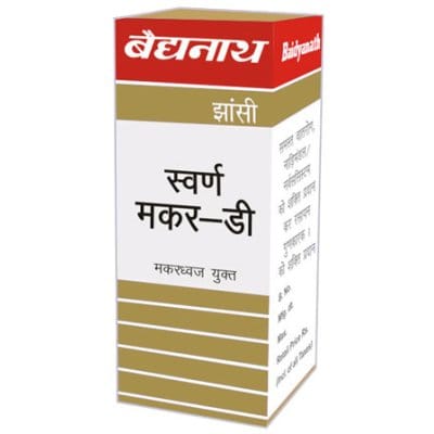 Baidyanath Swarna Makar-DDescription:Reliable non hormonal, safe, stimulant. It acts as an alternative, aphrodisiac, rejuvenator and nervine tonic. Increase sexual drive and improves performance & restores confidence. Indicated in loss of vigourand v…
