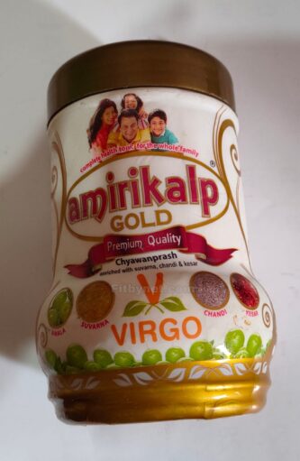 Virgo Amirikalp Gold COMPOSITION : Chyawanprash B.B.R. 88.42%, Shwet Moosail A.P.I. 0.2%, Shatavari A.P.I. 0.4%, Pipali A.P.I. 0.3%, Elaychi A.P.I. 0.3%,